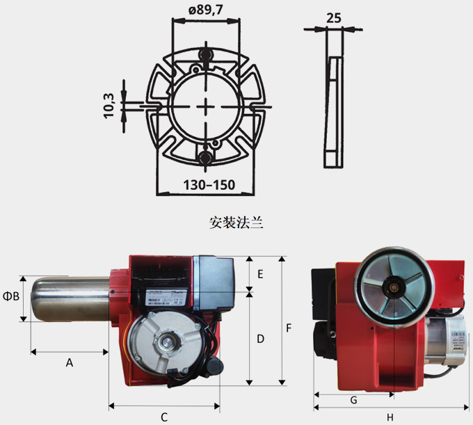 | 單位 mm | A | ΦB | C | D | E | F | G | H | 到地板最小距離 |